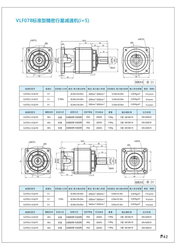 | 用途 | 減速機 | 品牌 | 卓藍 | 型號 | VLF078-L1-7-S2-P2 |